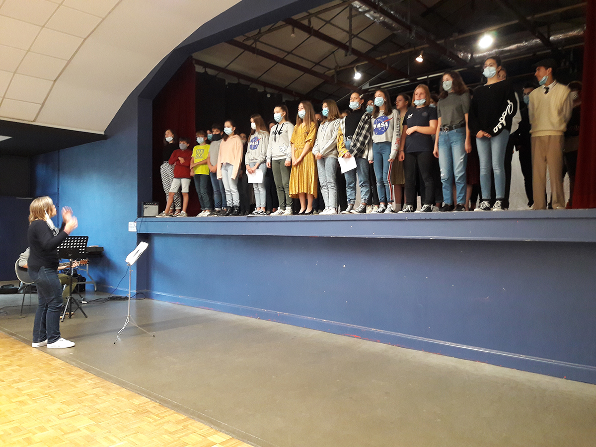 Une première grande répétition a eu lieu ce matin au Castel park. Quelques ajustements sont encore nécessaires, mais chaque élève est pleinement investi dans son rôle, à l’image d’Elsa, apprentie comédienne :