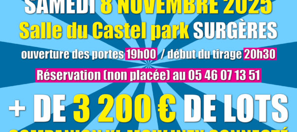 À Surgères, le Comité des fêtes organise un dîner bavarois et soirée dansante samedi 18 octobre, à Castel Park, dès 20h, au profit d’Octobre rose. Au menu : kir, choucroute royale avecLire la suite…