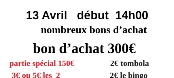 À Marsais, l’association le Cercle de l’espérance de Breuilles organise un loto samedi 12 avril, à la salle du Chat d’eau, à 20h15. Animé par Phil. 47 quines dont une au bingo.Lire la suite…