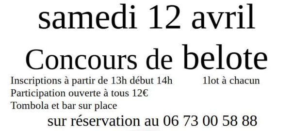 À Saint-Mard, l’association Les Tamalous 17 organise un concours de belote samedi 12 avril, à 14h. Un lot pour tous. Tombola et bar sur place. Participation ouverte à tous à 12€. InscriptionsLire la suite…