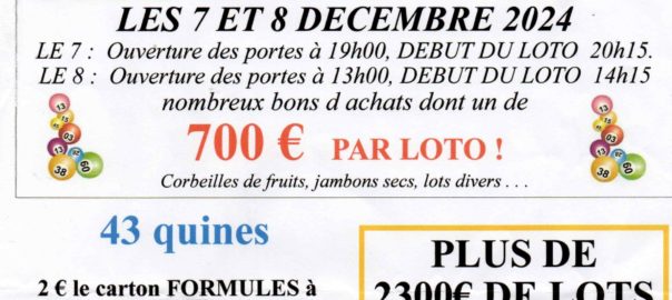 Bernay-Saint-Martin : 2 lotos les 7 et 8 décembre à la salle des fêtes
