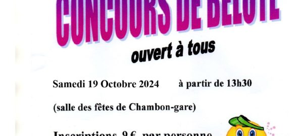 Chambon : concours de belote samedi 19 octobre à la salle de Chambon-gare