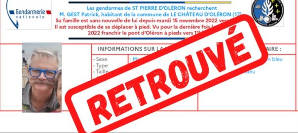 L’Oléronais porté disparu depuis mardi matin a été retrouvé sain et sauf. Selon le quotidien Sud-Ouest, Patrick Gest, 63 ans, a été récupéré vivant hier après-midi au rond-point des bateaux à LaLire la suite…