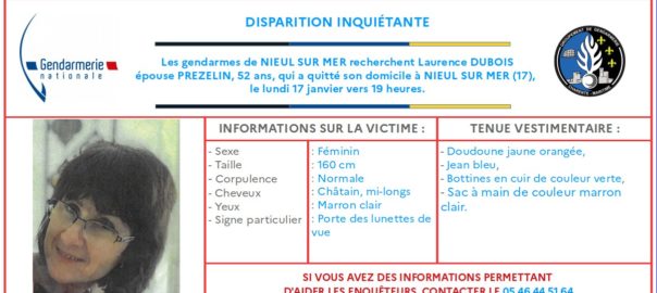 La gendarmerie de Nieul-sur-Mer relance son appel à témoins après la disparition inquiétante de Laurence Prézelin, née Dubois, le 17 janvier dernier. Cela fait maintenant plus de trois semaines que sa familleLire la suite…