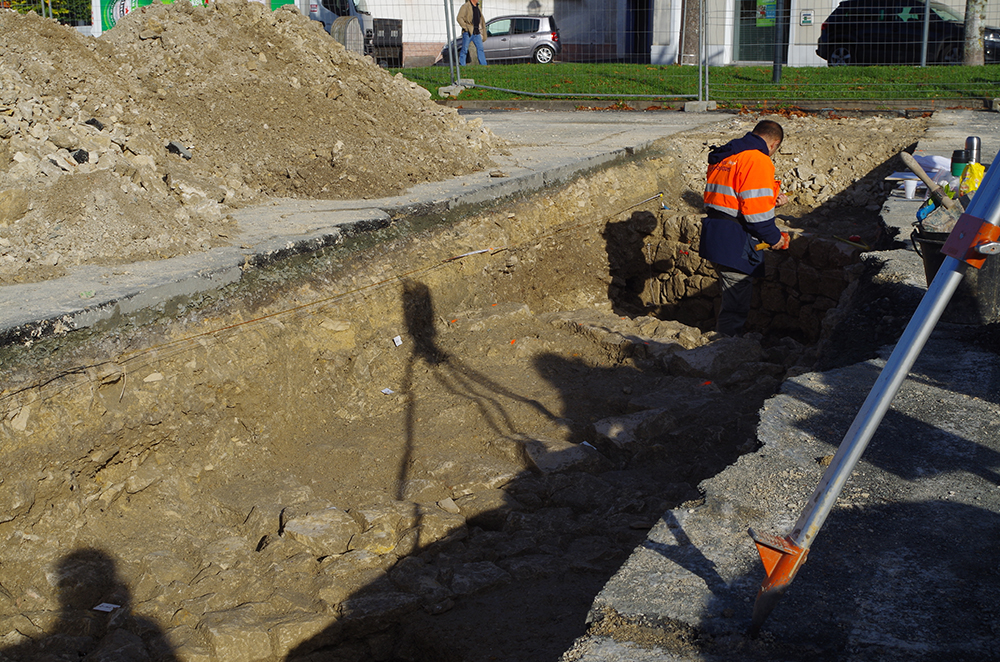 Les archéologues sont intervenues cette semaine en zone 3 et une tranchée au droit de la tour de l’horloge a révélé un ensemble de structures maçonnées en direction de l’avenue de la Libération. Des constructions probablement d’origine médiévale mais qui demeurent inconnues à ce jour. Aucun plan ancien ne montre une occupation à cet endroit-là de la ville. Ecoutez ce que nous disait ce matin Catherine Vacher, l’archéologue en charge du diagnostic :
