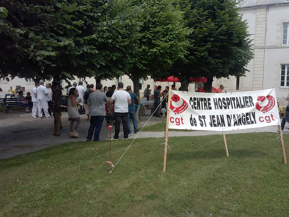 Opération barbecue ce midi pour la CGT dans la cour d’honneur de l’hôpital de Saint-Jean-d’Angély. Une cinquantaine de personnes s’est rassemblée à l’appel du syndicat pour échanger sur l’avenir de l’établissement qui doit résorber un déficit important avant la fin de l’année. Personnels, élus, anonymes… Ils étaient une cinquantaine à avoir répondu à l’invitation, à l’occasion de l’arrivée du nouveau directeur Fabrice Leburgue. On écoute Nicolas Turpin, masseur-kinésithérapeute :
