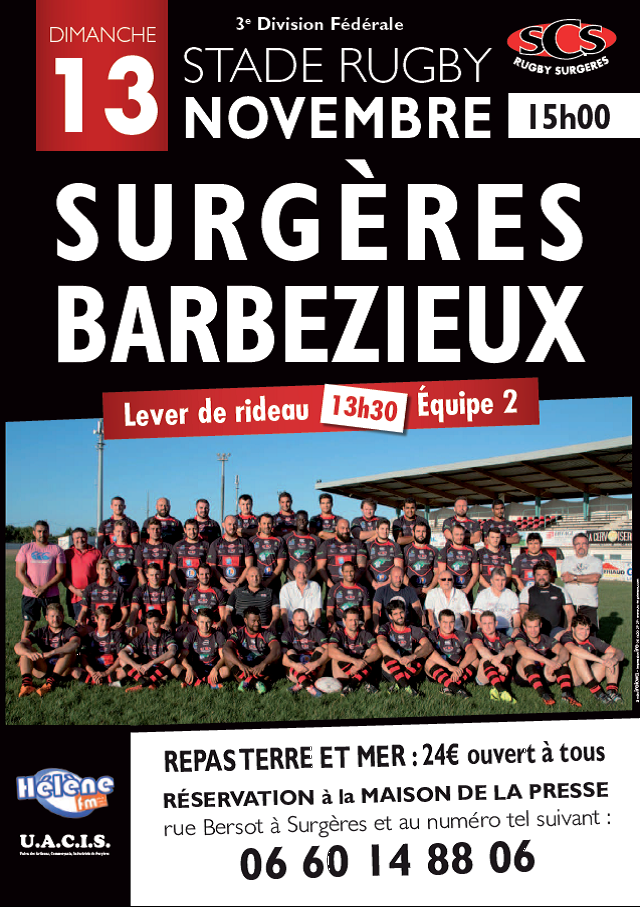 Rugby Fédérale 3 : Surgères/Barbezieux dimanche à 15h
