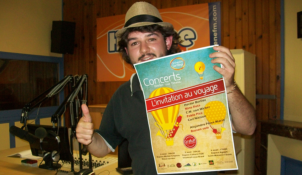 Scène ouverte avec le président de l’association Sortilège de La Rochelle pour le festival « L’invitation au voyage » du 4 au 6 août à Nieul-sur-Mer à 20h30, à Vouneuil-sous-Biard (86) à 20h30 et à Saint-Maixent-l’école (79) à 17h00.