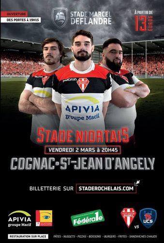 C’est l’évènement sportif de cette soirée à La Rochelle. Il n’est pas question de Top 14, mais de Fédérale 1. Le stade Marcel-Deflandre accueille un derby : Niort face à l’Union Cognac-Saint-Jean-d’Angély. C’est la 17e journée. Une aubaine pour les Charentais, leaders de la poule 2. Ils vont pouvoir faire montre de leur talent, face à une équipe classée 7e, 11 points derrière. Si le match aller s’était soldé par un nul à 16 partout, l’UCS devrait cette fois marquer la différence. Coup d’envoi de la rencontre à 20h35. Le match sera retransmis sur l’Equipe 21.