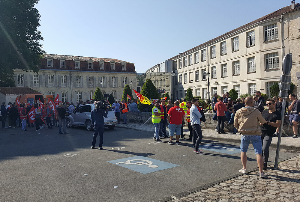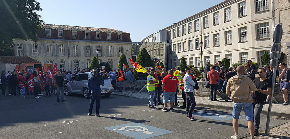 Ils lui ont fait sa fête. La Fête à Machon en écho à la Fête à Macron. Une centaine de cheminots grévistes de Saintes se sont réunis ce matin en assemblée générale devant la mairie. Ils ont interpellés le maire Jean-Philippe Machon pour lui demander son point de vue sur la situation du Technicentre SNCF où 200 emplois sont menacés. Ce dernier est venu à leur rencontre pour leur signifier qu’il était de leur côté et qu’il avait fait pression sur la SNCF pour préserver certaines activités. Les syndicats de cheminots n’y ont pas cru. Prochaine journée d’action mercredi à 10h à la gare, avant une manifestation le lendemain à Bordeaux.