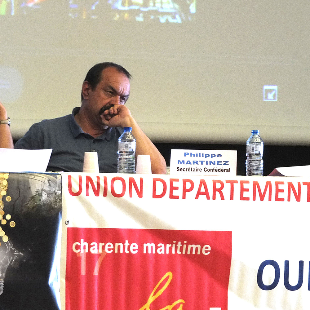 Philippe Martinez s’est exprimé ce matin à Pont-l’Abbé-d’Arnoult, à l’occasion du 60e congrès de l’Union départementale de la CGT de la Charente-Maritime. Dans un climat social tendu, et devant les 250 congressistes réunis, le secrétaire général du syndicat a redit sa détermination à faire barrage au gouvernement, qui est bien décidé à faire adopter coûte que coûte ses réformes. Notamment à la SNCF. Nous l’avons d’ailleurs interrogé sur le sort réservé au Technicentre de Saintes où 200 emplois sont menacés. Philippe Martinez :