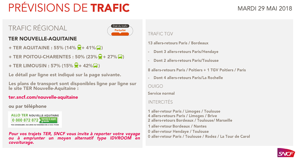 24e journée de grève à la SNCF. Les cheminots ne décolèrent pas, même si le taux de grévistes était au plus bas hier, et alors que le Sénat examine aujourd’hui le projet de réforme ferroviaire. Le trafic s’annonce de nouveau perturbé ce mardi. Pour les TGV, 4 allers-retours sont prévus entre Paris et La Rochelle. 1 train intercité entre Bordeaux, La Rochelle et Nantes. Et la moitié des liaisons TER Poitou-Charentes assurées en trains + cars.