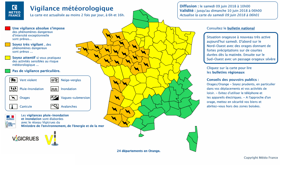 Fin de phénomène prévue le dimanche 10 juin 2018 à 04h00.