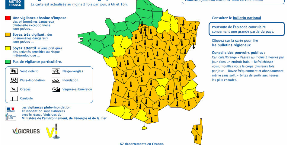 Les températures restent élevées en journée avec un mercure qui va grimper jusqu’à 32° cet après-midi sur la côte, 37 dans les terres. Les températures ne devraient pas redescendre en dessous de 20° la nuit, au moins jusqu’à mercredi où l’on devrait perdre une dizaine de degrés en moyenne en journée. Pensez donc à vous hydrater et à maintenir autant que possible votre logement au frais. Pour rappel, le numéro gratuit Canicule info service est accessible : 0 800 06 66 66. A noter que les villes de Rochefort, Saintes et Surgères ont fait savoir qu’un registre spécial est mis à disposition pour signaler une personne âgée vulnérable, en ces temps de fortes chaleurs.