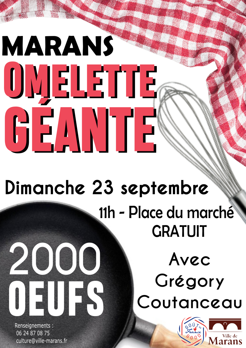 Marans va tenter une performance dimanche. En réalisant une omelette géante avec le chef rochelais Grégory Coutanceau. Le public sera mis à contribution pour casser les œufs. 2000 au total. L’évènement prévu à partir de 11h s’inscrit dans le cadre du Salon de la gastronomie et des antiquaires qui a lieu tout le week-end. A noter que des galettes charentaises seront offertes aux 200 premiers visiteurs demain à 10h.