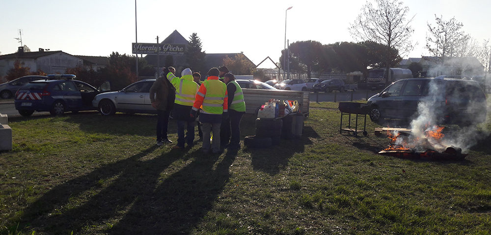 Un barrage filtrant a été mis en place sur le pont de l’île d’Oléron. Mais aussi au rond-point d’Intermarché à Surgères. Une vingtaine de Gilets jaunes rassemblés pour informer les automobilistes et les routiers, ravitaillés par les habitants et les commerçants. On écoute leur référent Jérôme Pérette :
