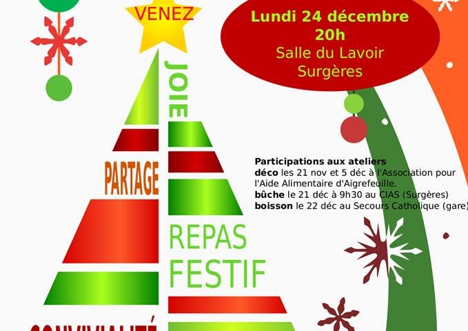 L’opération s’appelle « Fais ton Noël », c’est donc le lundi 24 décembre, salle du lavoir à Surgères. Il est possible de réserver au 06 95 86 08 76. A noter qu’un service de transport sur demande sera assuré pour les personnes ayant de problèmes de mobilité.