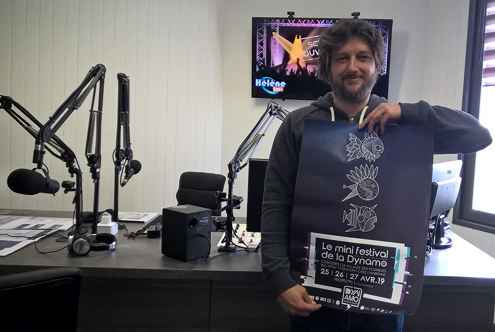 Scène ouverte avec le programmateur Yoann Desouche de l’Association « La Dynamo » de Niort pour la promotion de la 3e édition du Mini Festival (mais c’est pas la taille qui compte… !) qui aura lieu du 25 au 27 avril à Niort.