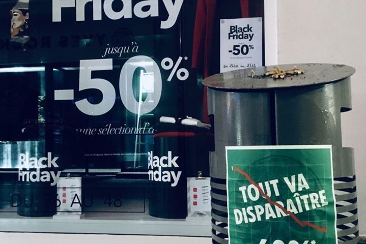 Des affiches « Block Friday » placardées dans toute la ville à La Rochelle pour s’opposer au Black Friday. Une quinzaine d’activistes du mouvement Extinction rébellion ont mené une campagne d’affichage la nuit dernière pour dénoncer la surconsommation et l’impact de l’opération commerciale venue des Etats-Unis sur l’environnement. L’objectif était aussi de demander aux candidats à l’élection municipale de se positionner sur la suppression de la publicité dans l’espace public.