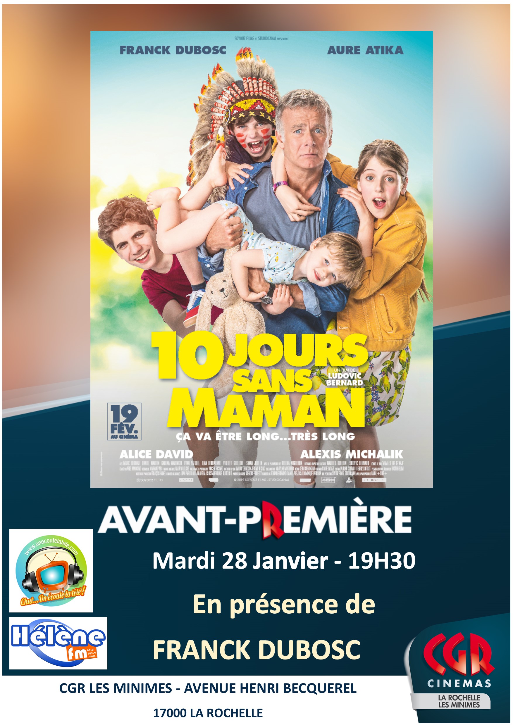 Franck Dubosc attendu ce soir au Méga CGR de La Rochelle. L’acteur vient présenter en avant-première son dernier film « 10 jours sans maman » de Ludovic Bernard. Film qui sortira le 19 février prochain. La séance débute à 19h30.