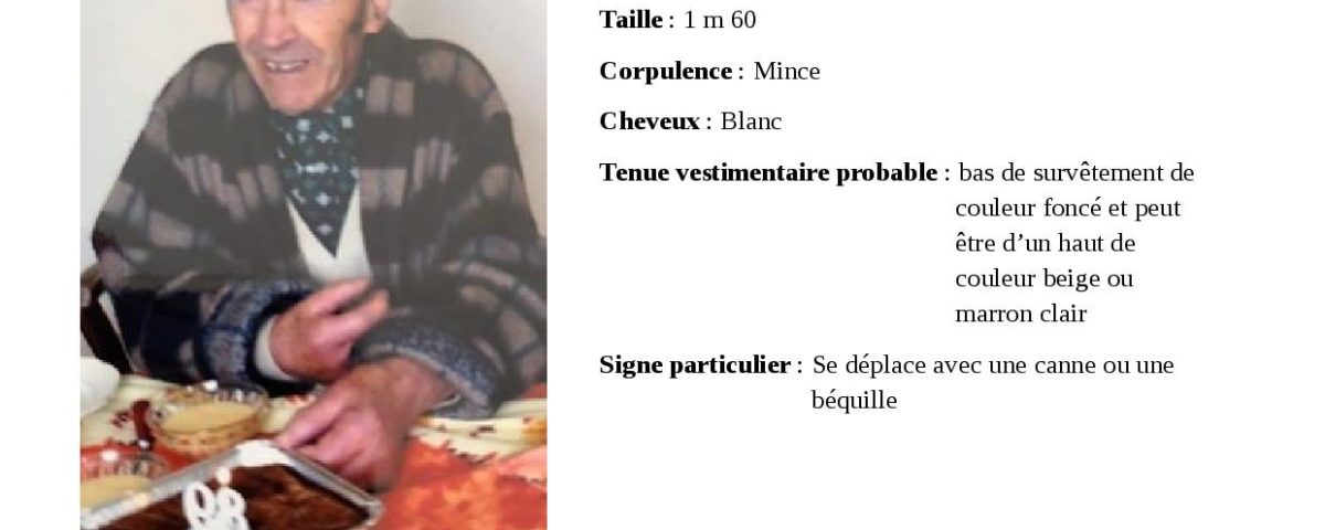 Un appel à témoins a été lancé après une disparition inquiétante à Loire-les-Marais, près de Rochefort. James Lebreton, 96 ans, n’a plus donné signe de vie depuis jeudi dernier. Il a été vu pour la dernière fois à 17h45 à son domicile situé au lieu-dit « Le Treuil ». Malgré les recherches entreprises depuis vendredi et le déploiement d’un important dispositif, l’homme reste introuvable. James Lebreton mesure 1,60m. Il est mince et a les cheveux blancs. Le jour de sa disparition, il portait un bas de survêtement de couleur foncée, et peut-être un haut beige ou marron clair. Il se déplace toujours avec une canne ou une béquille. Si vous avez des renseignements, vous pouvez contacter le 05 46 87 38 10.
