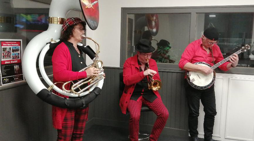 Zeus Opus Compagny est un orchestre de jazz festif basé a Nieul-Lès-Saintes. Il s’inspire de la musique de la Nouvelle-Orléans, du swing et des adaptations jazzy de musique d’ambiance. Leurs instruments : le banjo ou guitare, le cajon, le sousaphone, la trompette.