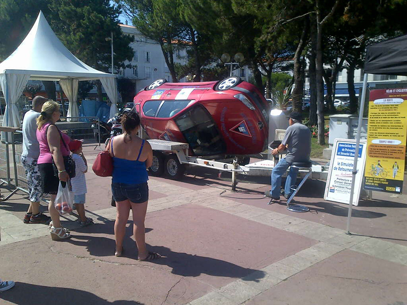 C’était l’attraction du jour hier place Charles-de-Gaulle à Royan. Une voiture-tonneau à bord de laquelle les touristes étaient invités à monter. Il s’agissait en fait d’une animation mise en place dans le cadre d’une journée de prévention à la sécurité routière pilotée par les services de l’Etat. L’idée étant de rappeler au public que la route reste dangereuse, même en été. Marc Chèvre, coordinateur à la sécurité routière pour la préfecture de la Charente-Maritime :