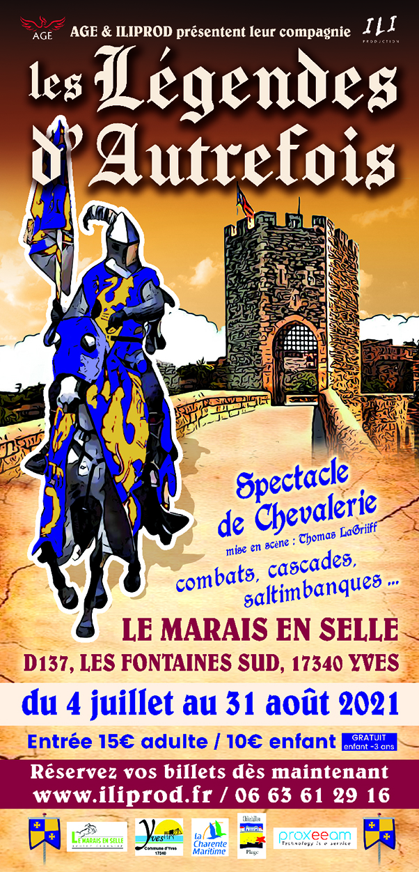 Nouveau à Yves, près de La Rochelle. Un parc médiéval itinérant ouvre dimanche prochain au centre équestre du Marais en selle. Ça s’appelle Les Légendes d’autrefois. Et tout l’été, seront proposés des animations et un spectacle de chevalerie avec une vingtaine d’artistes en scène. C’est Judicaël Vatier, directeur de production et comédien, qui nous en parle :