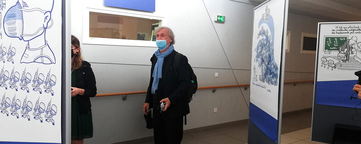 Le dessinateur du journal Le Monde est allé à leur rencontre hier matin, à l’occasion de l’inauguration d’une exposition d’une trentaine de ses dessins sur la centaine qu’il a offerte à l’établissement. L’artiste a souhaité faire part de sa reconnaissance envers tous ces professionnels qui luttent encore contre la pandémie de covid-19. Il nous raconte comment sont nées ses œuvres :
