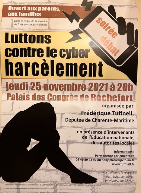 La proposition de loi contre le harcèlement scolaire bientôt examinée à l’Assemblée nationale. 1 enfant sur 10 est victime de ce phénomène en France. Le texte porté par le député Erwan Balanant sera étudié le 1er décembre. Il prévoit notamment la création d’un délit pénal. Les sanctions pourront aller jusqu’à 10 ans de prison et 150 000 euros d’amende. En outre, la proposition entend inscrire un droit à la protection contre le harcèlement scolaire et le cyberharcèlement. Le cyberharcèlement, un sujet qui sera abordé jeudi prochain à Rochefort, à l’occasion d’une soirée-débat organisée par la députée de Charente-Maritime Frédérique Tuffnell. Il aura lieu en présence de la rectrice de l’Académie de Poitiers Bénédicte Robert et du commissaire de police Olivier Saudreau, et en visio avec le secrétaire d’Etat au numérique Cédric O et le député Erwan Balanant à l’origine de la proposition de loi. C’est à 20h au palais des congrès.