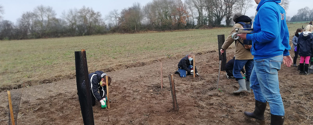 Plantation d’une haie avec les écoliers de Saujon et Le Chay.