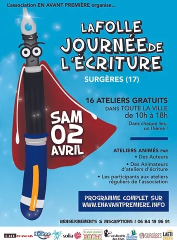 L’association En avant première, qui propose régulièrement des ateliers d’écriture à Surgères, Saint-Jean-d’Angély et sur l’île d’Oléron, organise samedi La Folle journée de l’écriture. C’est la 2e édition. 16 ateliers gratuits seront proposés toute la journée dans les quatre coins de la ville de Surgères. Dans chaque lieu, un thème. Véronique Amans, animatrice, nous en parle :