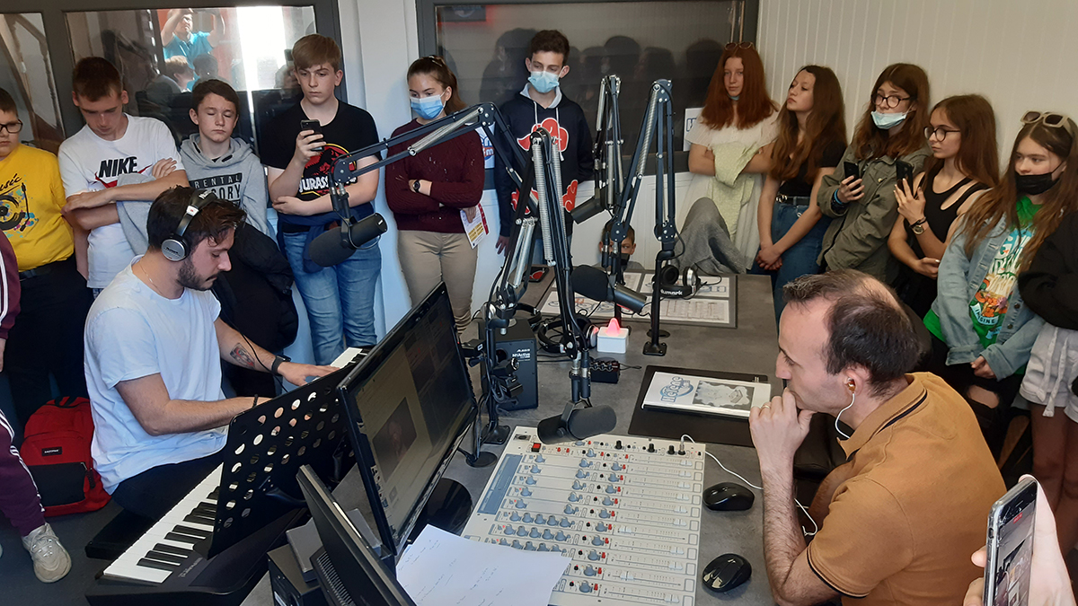 Les 4e du collège de Courçon sont venus ce vendredi matin rencontrer l’équipe d’Hélène FM, les studios, la rédaction et l’animation. A cette occasion, ils ont pu assister à l’enregistrement de l’émission Scène ouverte qui recevait le chanteur rochelais Henry (The Voice 2022). Merci à eux et à leurs professeurs pour leur écoute, et à Henry pour sa disponibilité et sa sympathie.