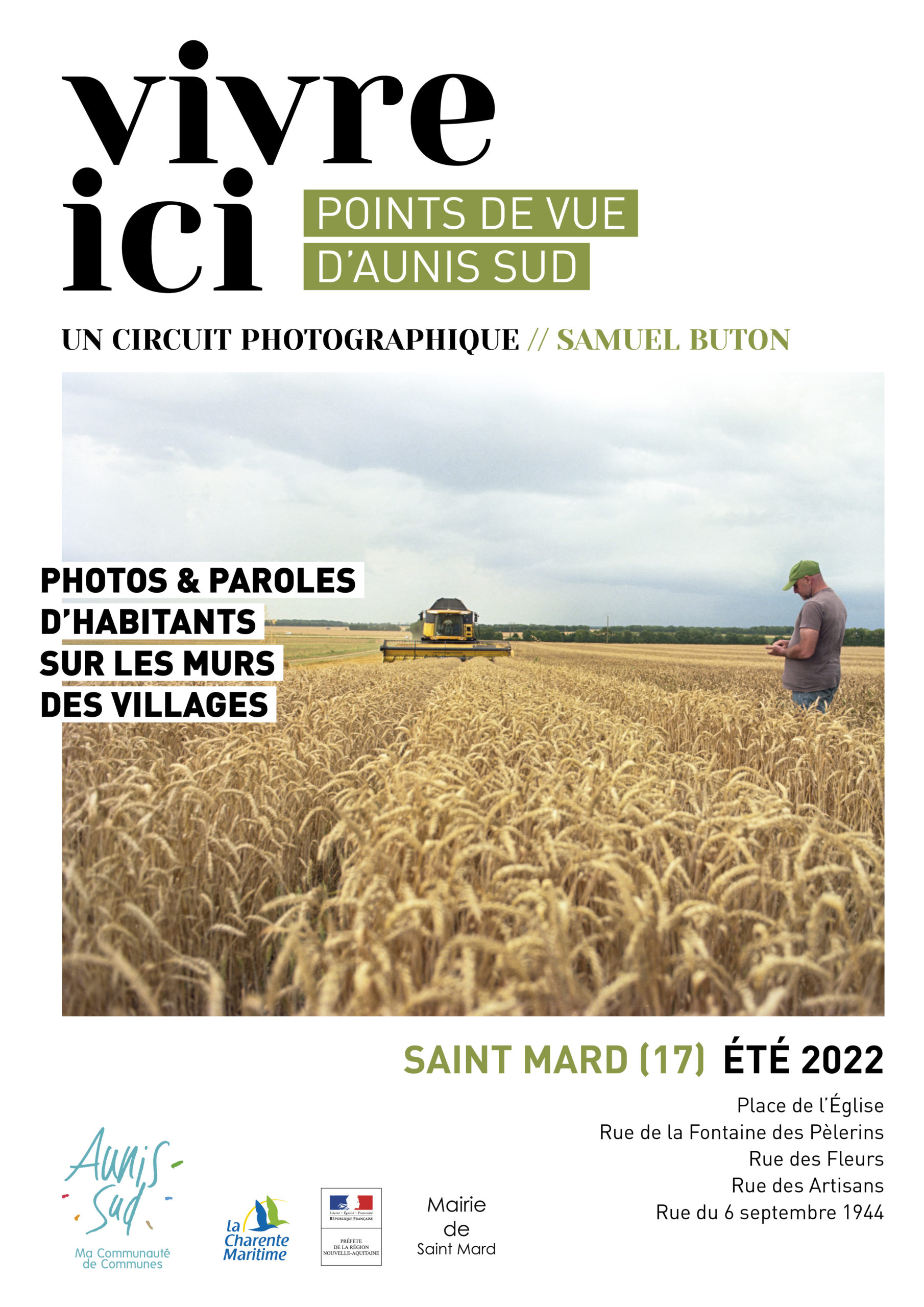 L’inauguration cet après-midi à Saint-Mard, près de Surgères, de l’exposition photo « Vivre ici – points de vue d’Aunis Sud ». Une exposition à ciel ouvert, visible tout l’été sur les façades des maisons et des bâtiments de la commune, qui propose des photos grand format et des témoignages d’habitants. Elle est signée du photographe rochelais Samuel Buton qui est déjà l’auteur d’expos similaires sur le territoire à Chambon, Saint-Georges-du-Bois et Ciré-d’Aunis.