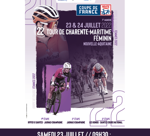 Du cyclisme avec le retour ce week-end du Tour de la Charente-Maritime féminin. C’est la 22e édition de cette épreuve qui compte pour la Coupe de France National femme. 7e et avant-dernière manche du championnat. Trois étapes sont prévues dont deux pour la journée de ce samedi. La première entre Saintes et Jarnac-Champagne de 85,3km. Et la 2e qui est un contre-la-montre à Jarnac-Champagne sur 10,5km. La 3e et dernière étape conduira les concurrentes entre Les Gonds et Saintes, soit une distance de 95,5km. Arrivée prévue sur le Cours National. 10 équipes sont engagées en Nationale 1. Et 11 en Nationale 2. La vainqueure succèdera au palmarès à Séverine Eraud du Stade rochelais Charente-Maritime qui s’était imposée l’an dernier.