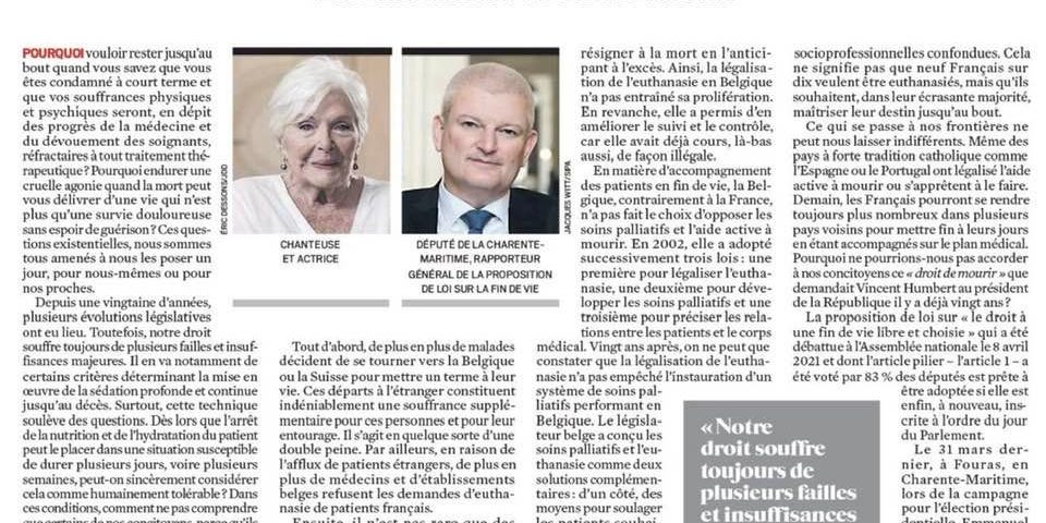 Olivier Falorni cosigne une tribune avec Line Renaud sur le droit à mourir dans la dignité. Elle a été publiée hier dans le JDD. Engagé depuis plusieurs années, le député de La Rochelle, qui est aussi rapporteur général de la proposition de loi sur la fin de vie, plaide pour légaliser l’aide active à mourir. Il a reçu cette fois le soutien de la chanteuse et comédienne. Les deux auteurs de cette lettre ouverte parlent d’une hypocrisie coupable et même cruelle de la France en matière de fin de vie.