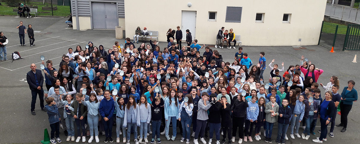 Les élèves se sont rassemblés dans la cour du collège pour dire « NON » au harcèlement.