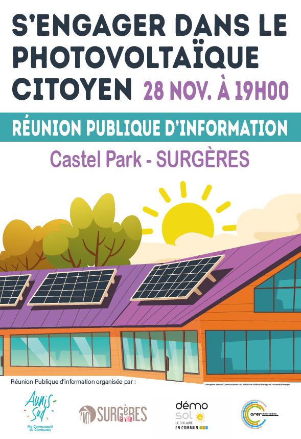 La réunion publique sur le photovoltaïque citoyen et l’autoconsommation a lieu ce soir à 19h à la salle du Castel park de Surgères.