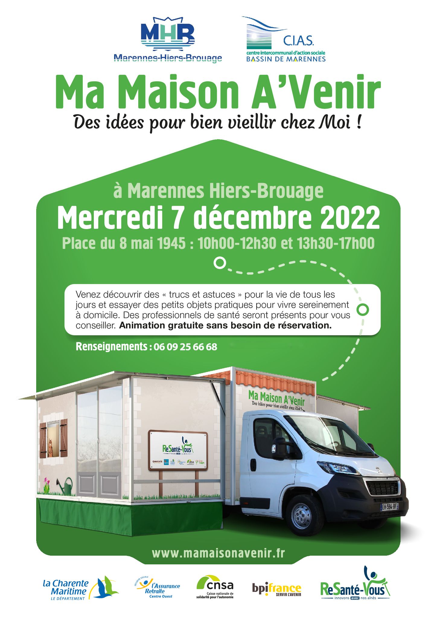 La Ville accueille ce mercredi le dispositif « Ma Maison A’Venir », proposé en partenariat avec le Département de la Charente-Maritime et le Centre intercommunal d’action sociale. Il permet de mieux connaître les solutions en termes d’installations et d’équipements de son logement, afin d’y vivre le plus longtemps possible et en toute sécurité. On écoute Olivier Duc, coordinateur du projet santé-social de territoire au CIAS du Bassin de Marennes :