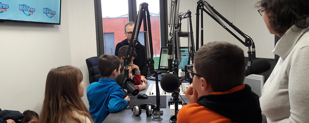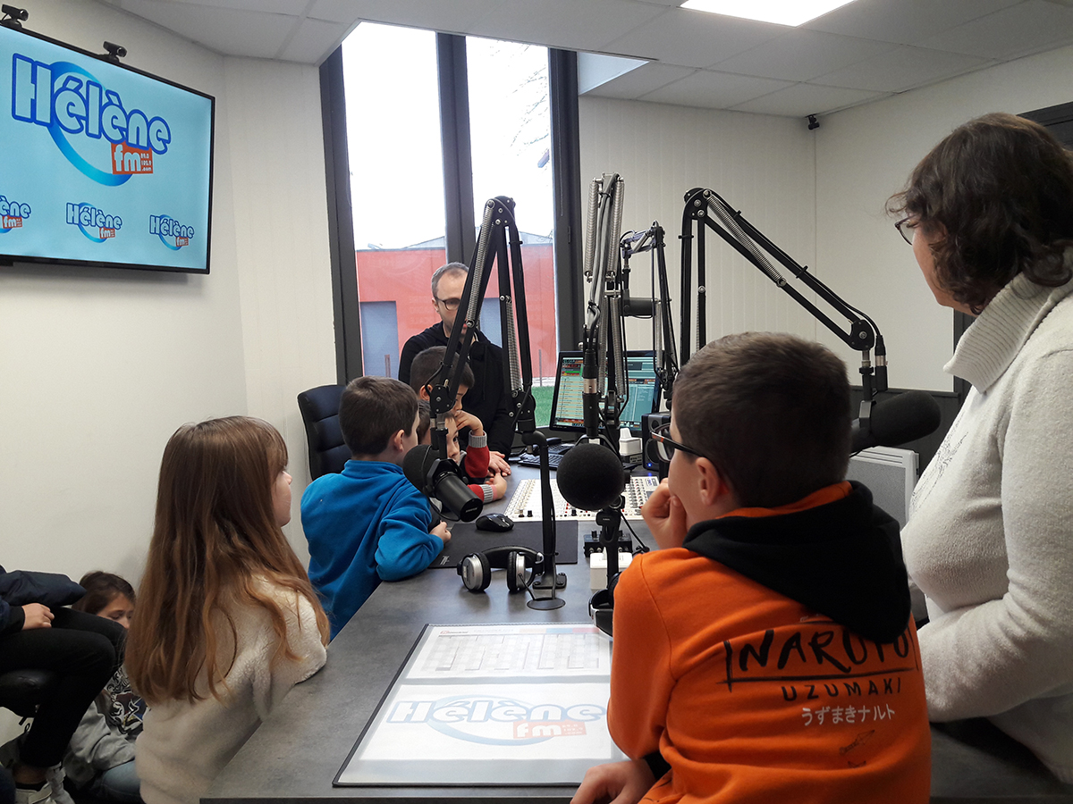 Les enfants du centre de loisirs Les Petits castors de Beauvais-sur-Matha sont venus visiter les studios de la radio Hélène FM.