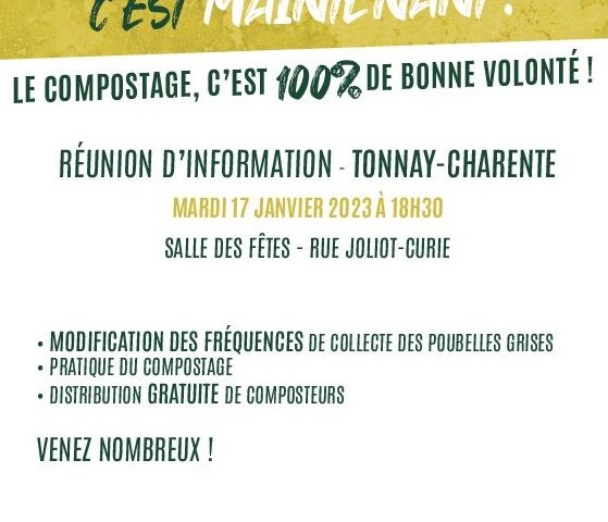 Une réunion publique a lieu ce soir pour présenter les solutions mises en place sur la commune, avant l’entrée en vigueur de la loi sur le tri des déchets alimentaires à compter du 1er janvier 2024. Il sera notamment question du compostage individuel. A ce titre, des composteurs de jardin seront distribués gratuitement. Rendez-vous à la salle des fêtes à 18h30.