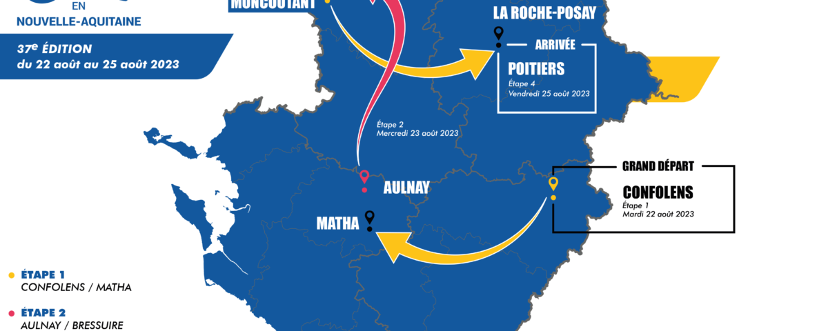 La 37e édition de la course partira le mardi 22 août de Confolens en Charente, direction Matha en Charente-Maritime. La 2e étape le lendemain se déroulera entre Aulnay-de-Saintonge jusqu’à Bressuire dans les Deux-Sèvres. Puis le jeudi 24 au matin : départ de Coussay-les-Bois dans la Vienne direction La Roche-Posay, suivi du contre-la-montre l’après-midi avec départ et arrivée à La Roche-Posay. Et dernière étape le lendemain entre Moncoutant-sur-Sèvre, dans les Deux-Sèvres et Poitiers dans la Vienne.