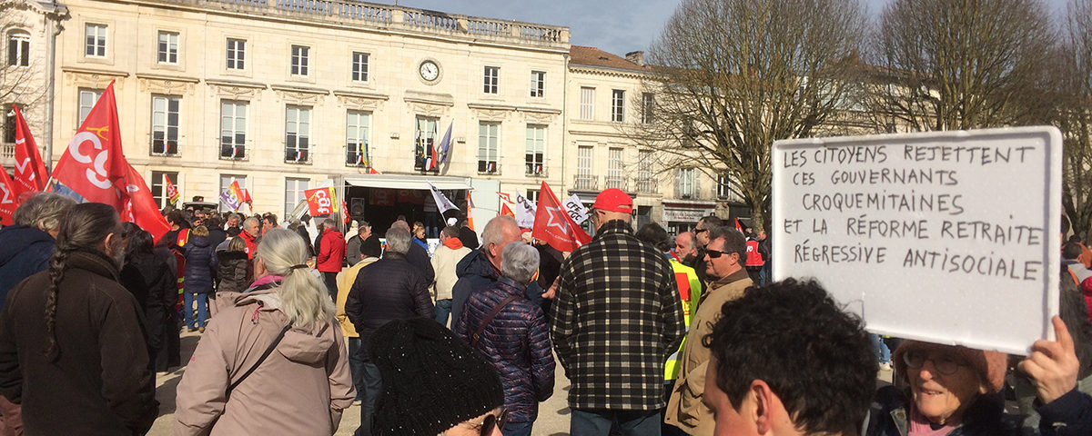 Le combat contre la réforme des retraites se poursuit. Malgré une baisse de la mobilisation ce mardi, avec 18 000 manifestants en Charente-Maritime selon les organisateurs contre 27 000 jeudi dernier, l’intersyndicale appelle à une 11e journée d’action jeudi prochain. « La victoire est à notre portée », clame-t-elle dans un communiqué. Quatre manifestations sont prévues dans le département. À 10h30 devant le palais de justice de Saintes et place Charles-de-Gaulle à Royan. À 14h place Colbert à Rochefort, après un barbecue unitaire. Et à 14h30 sur le parvis de la gare de La Rochelle.