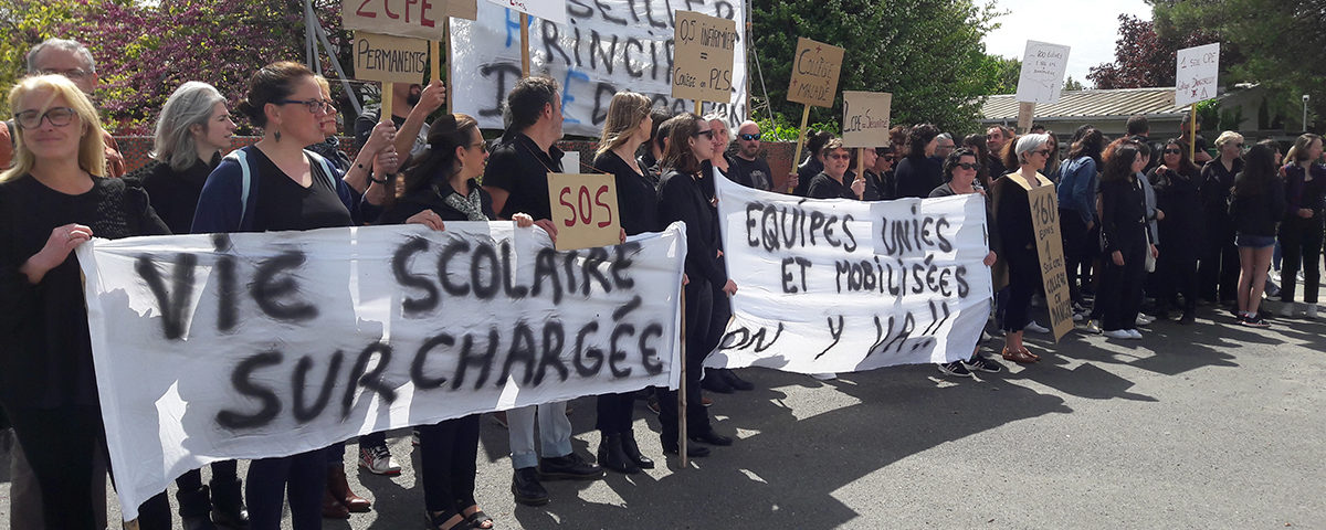 À Surgères, une soixantaine d’enseignants et de parents d’élèves du collège Hélène de Fonsèque se sont mobilisés hier midi devant les grilles de l’établissement. Dans le cadre d’une opération « collège mort », les profs se sont mis en grève pour la journée, et aucun parent n’y a déposé son enfant ce jeudi. Tous réclament plus de moyens pour leur établissement qui, selon eux, est sous-doté. Une situation qui dure depuis trois ans maintenant, comme s’en désole Céline Gouttefangeas, professeure de Lettres et représentante du personnel et du syndicat enseignant SNES :