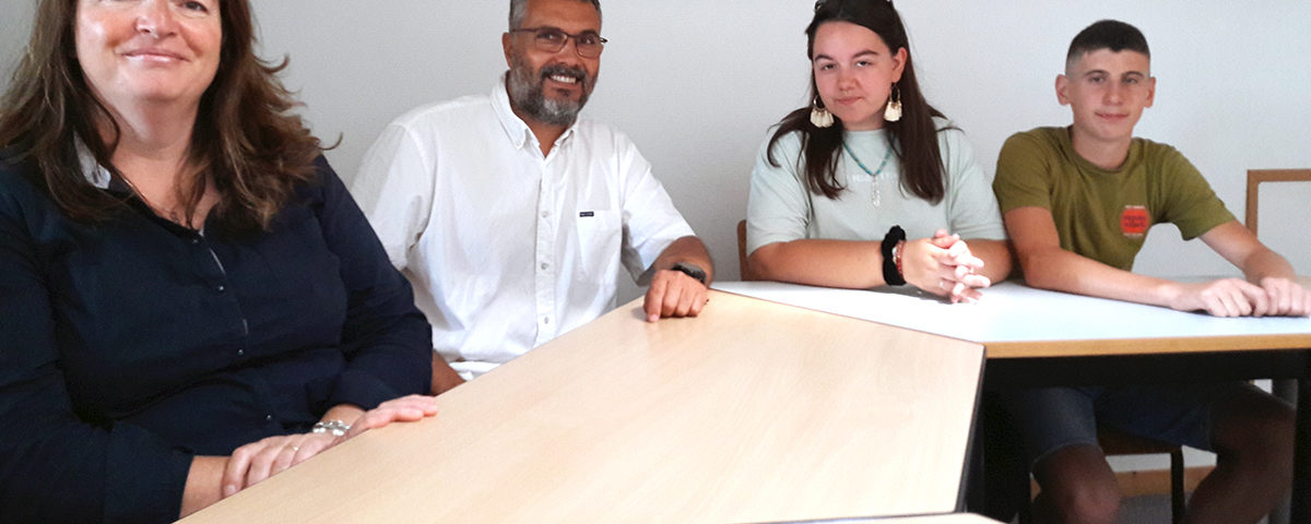 De gauche à droite : Yasminde Labrousse, Stéphane Mérillon, Jade et Théo.
