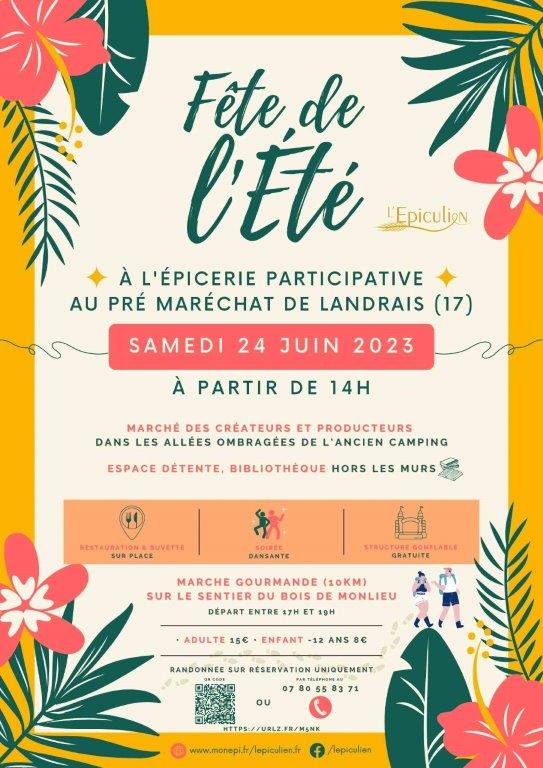 Rendez-vous à Landrais pour la Fête de l’été ce samedi 24 juin, à partir de 14h, au pré Maréchat. Au programme : marché des créateurs et producteurs dans les allées ombragées de l’ancien camping, espace détente, bibliothèque hors les murs, et soirée dansante gratuite. Sur place buvette, restauration et structure gonflable gratuite pour les enfants. Une marche gourmande de 10 kilomètres sur le sentier du bois de Monlieu vous est aussi proposée pour un départ entre 17h et 19h, sur réservation uniquement au 07 80 55 83 71. Tarif adulte 15€ et 8€ pour les enfants de moins de 12 ans.