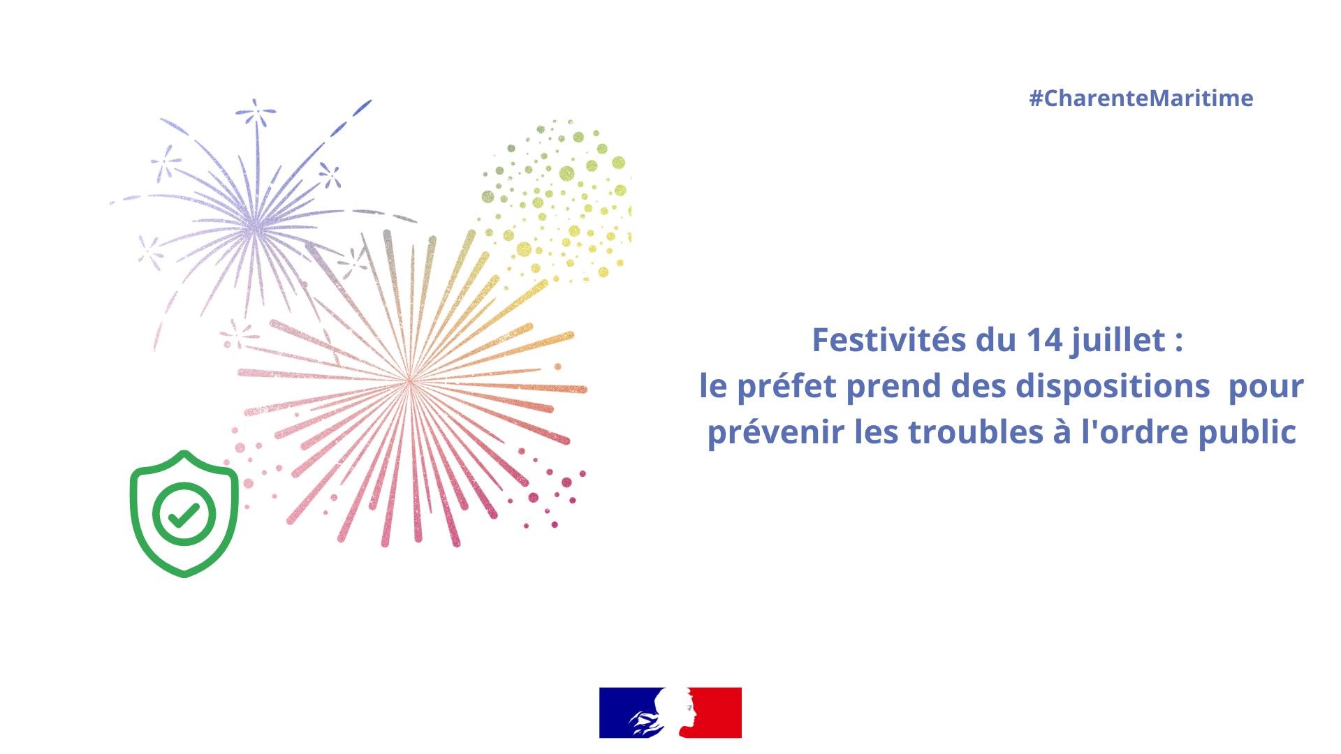 Festivités du 14 juillet : le préfet de la Charente-Maritime prend des mesures pour prévenir les troubles à l’ordre public. Nicolas Basselier a pris plusieurs arrêtés interdisant jusqu’à dimanche minuit le port et le transport d’armes et d’objets pouvant constituer une arme par destination, mais aussi l’acquisition et le transport par des particuliers de bouteilles ou bidons contenant des produits chimiques, inflammables ou explosifs, y compris du carburant. Autant de dispositions qui viennent en complément du décret signé le 8 juillet par la Première Ministre Élisabeth Borne portant sur l’interdiction de la vente, du port et du transport d’engins pyrotechniques et de feux d’artifice jusqu’au 15 juillet inclus.