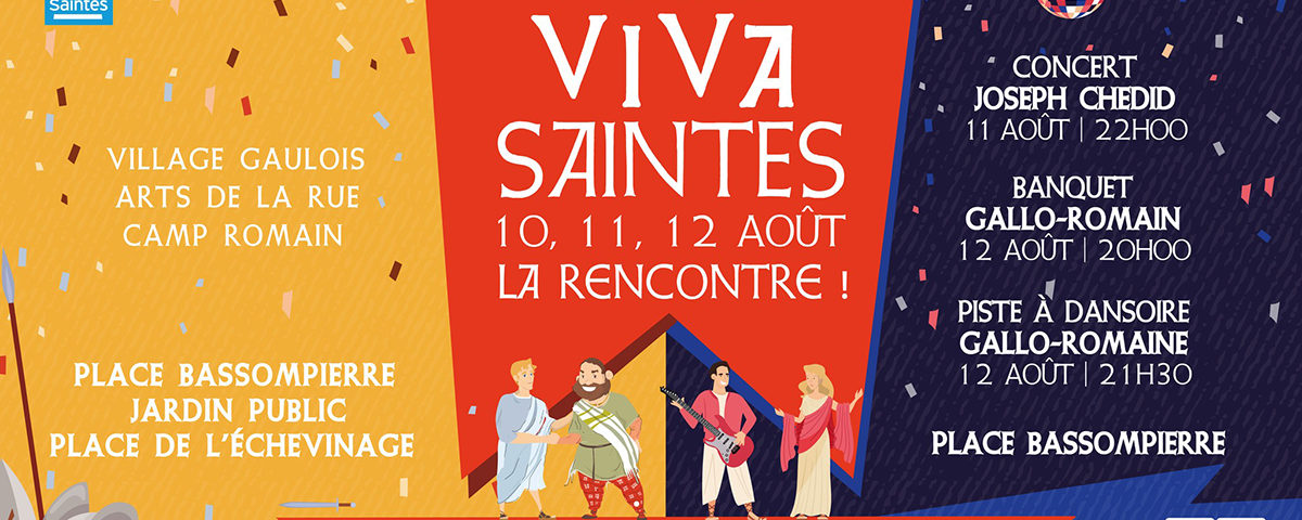 Le coup d’envoi aujourd’hui de Viva Saintes. C’est la 2e édition de cet évènement qui va transformer la ville en cité gallo-romaine. Le festival labellisé Sites en scène par le Département de la Charente-Maritime propose pendant trois jours une immersion dans l’Antiquité, du temps où Saintes s’appelait encore Médiolanum. Des spectacles, animations et ateliers vont se dérouler jusqu’à samedi. Des prêts de costumes sont même proposés au public à la salle des Jacobins. Un défilé théâtralisé est prévu cet après-midi dès 16h30. Et une école de gladiateurs pour les plus jeunes est installée place Bassompierre. On notera également le concert de Joseph Chedid demain soir à 22h, et un banquet gallo-romain samedi à 20h.