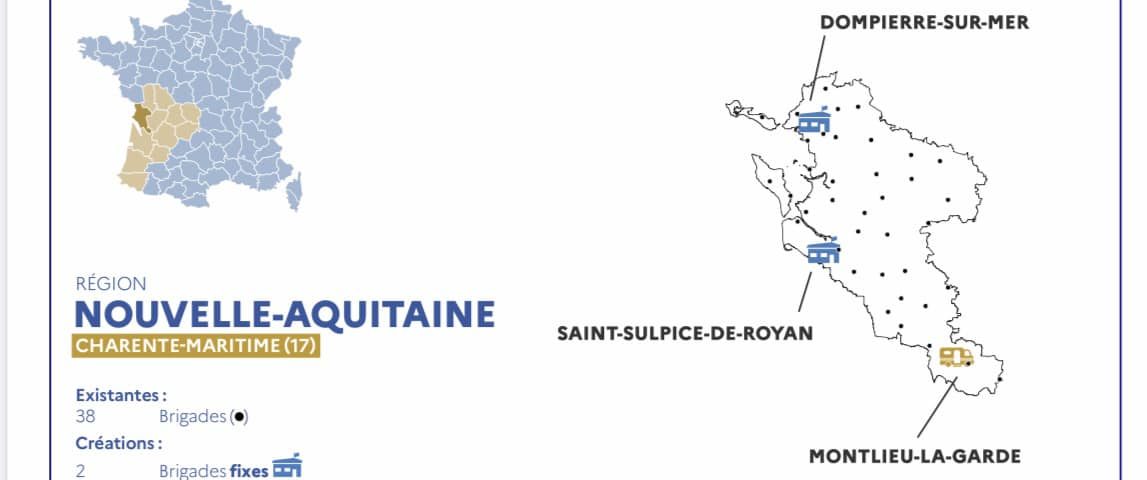 238 nouvelles brigades de gendarmerie vont voir le jour d’ici quatre ans en France. La liste a été dévoilée hier après-midi à Tonneins, dans le Lot-et-Garonne, à l’occasion d’un déplacement du Président Emmanuel Macron. L’État souhaite un meilleur maillage du territoire, notamment dans les zones péri-urbaines délaissées et dans les secteurs en pleine explosion démographique, alors que près de 500 brigades avaient été supprimées au début des années 2000. En Charente-Maritime, trois projets ont été retenus. Deux brigades fixes seront créées dans le département : l’une à Dompierre-sur-Mer, près de La Rochelle, et l’autre à Saint-Sulpice-de-Royan, alors que le choix des élus locaux s’était finalement porté sur la commune de Breuillet. Une dernière brigade, cette fois mobile, sera implantée à Montlieu-la-Garde. Ces nouvelles gendarmeries proposeront aux habitants des services tels que l’accueil du public, des victimes, la prise de plainte et renforceront la présence des forces de l’ordre sur l’ensemble du territoire. Elles viendront renforcer les 38 brigades de gendarmerie déjà existantes. Une excellente nouvelle dont s’est réjouie la présidente du Département de la Charente-Maritime Sylvie Marcilly.