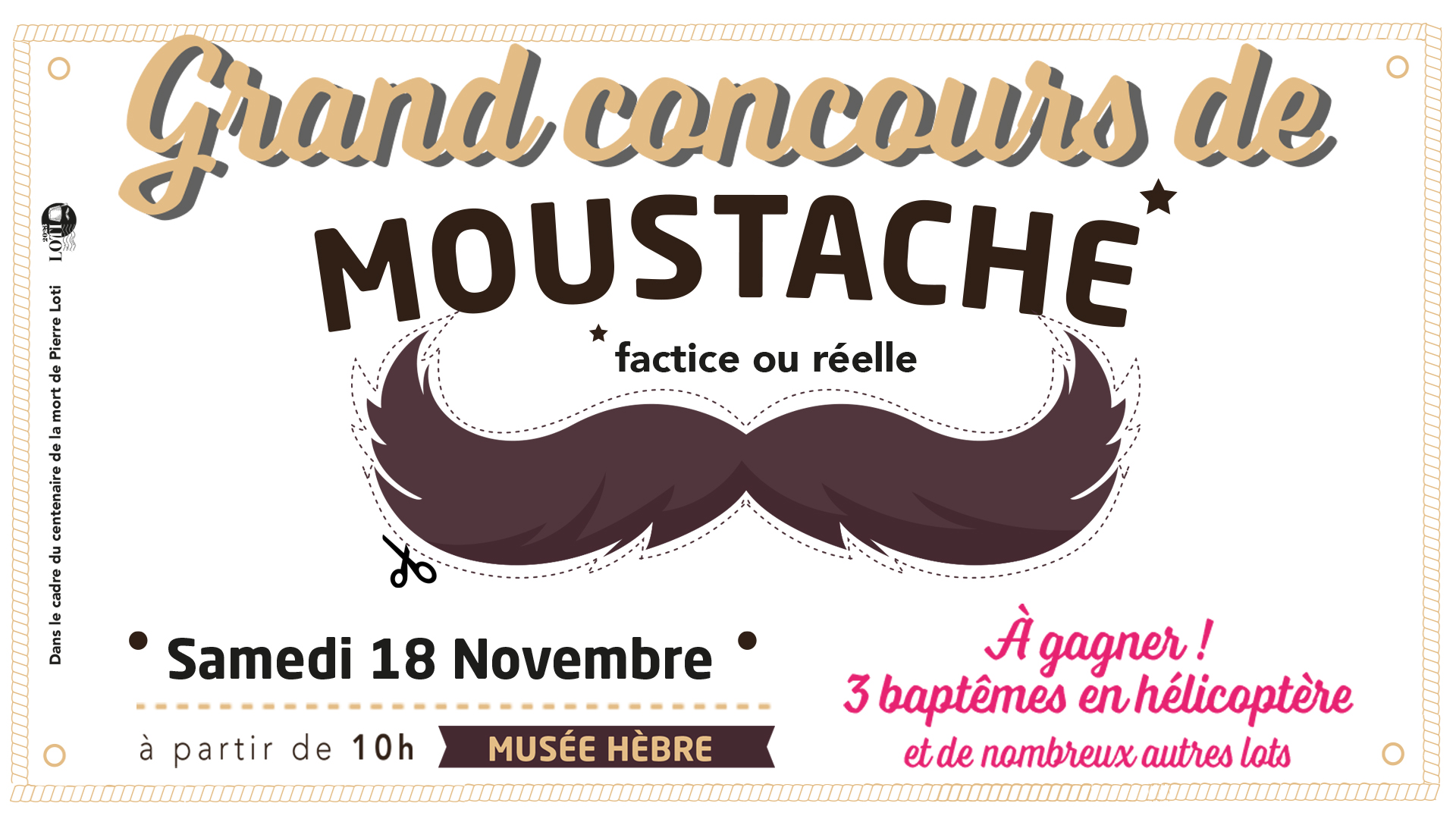 Rochefort organise un concours de moustache. Pour conclure l’année consacrée à Pierre Loti et à l’occasion de Movember, le mois de sensibilisation à la lutte contre le cancer de la prostate, la Ville propose de se parer de sa plus belle moustache, réelle ou factice. Tout le monde peut donc participer.